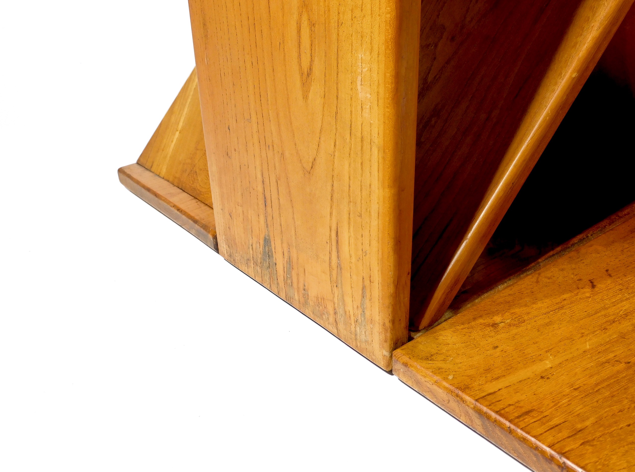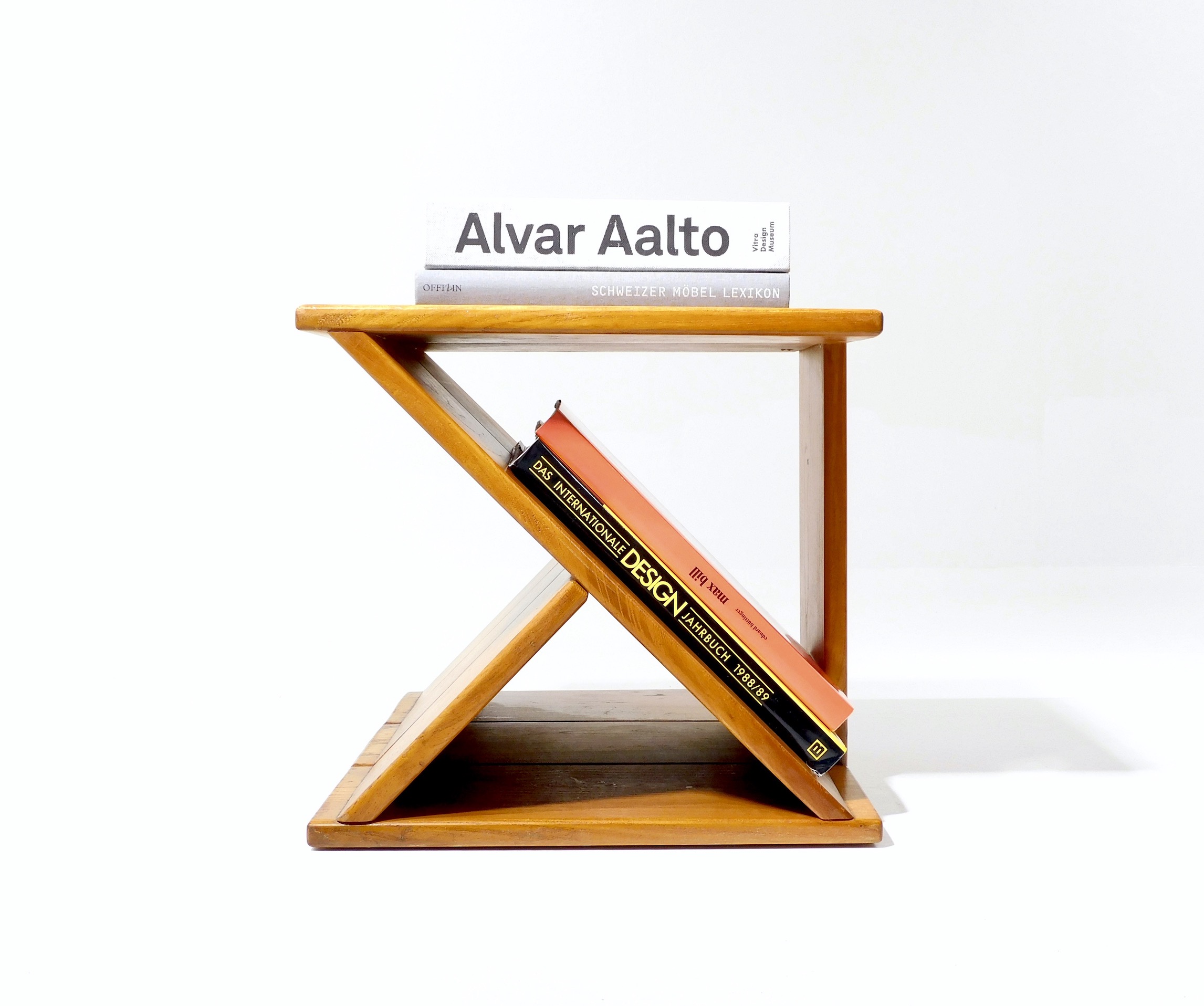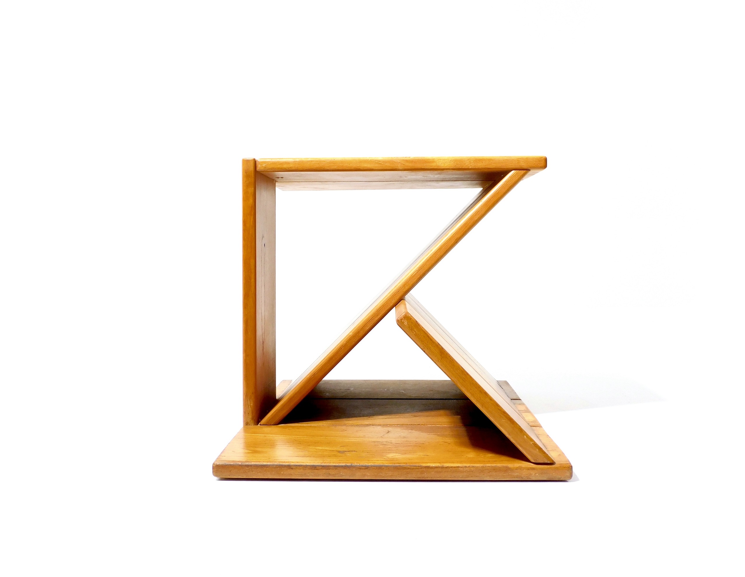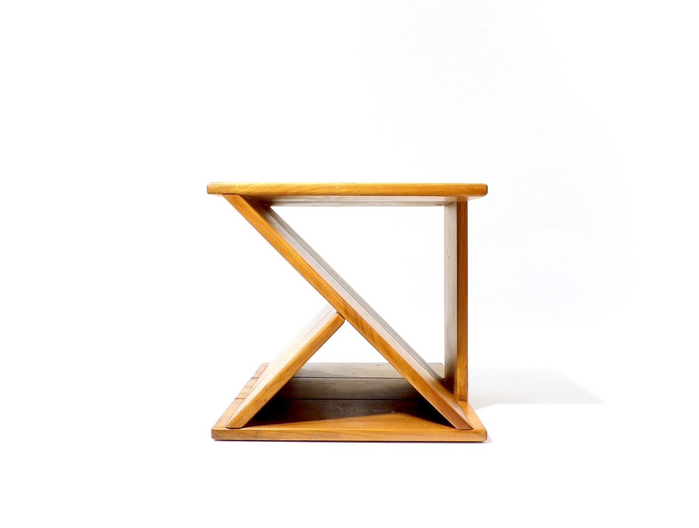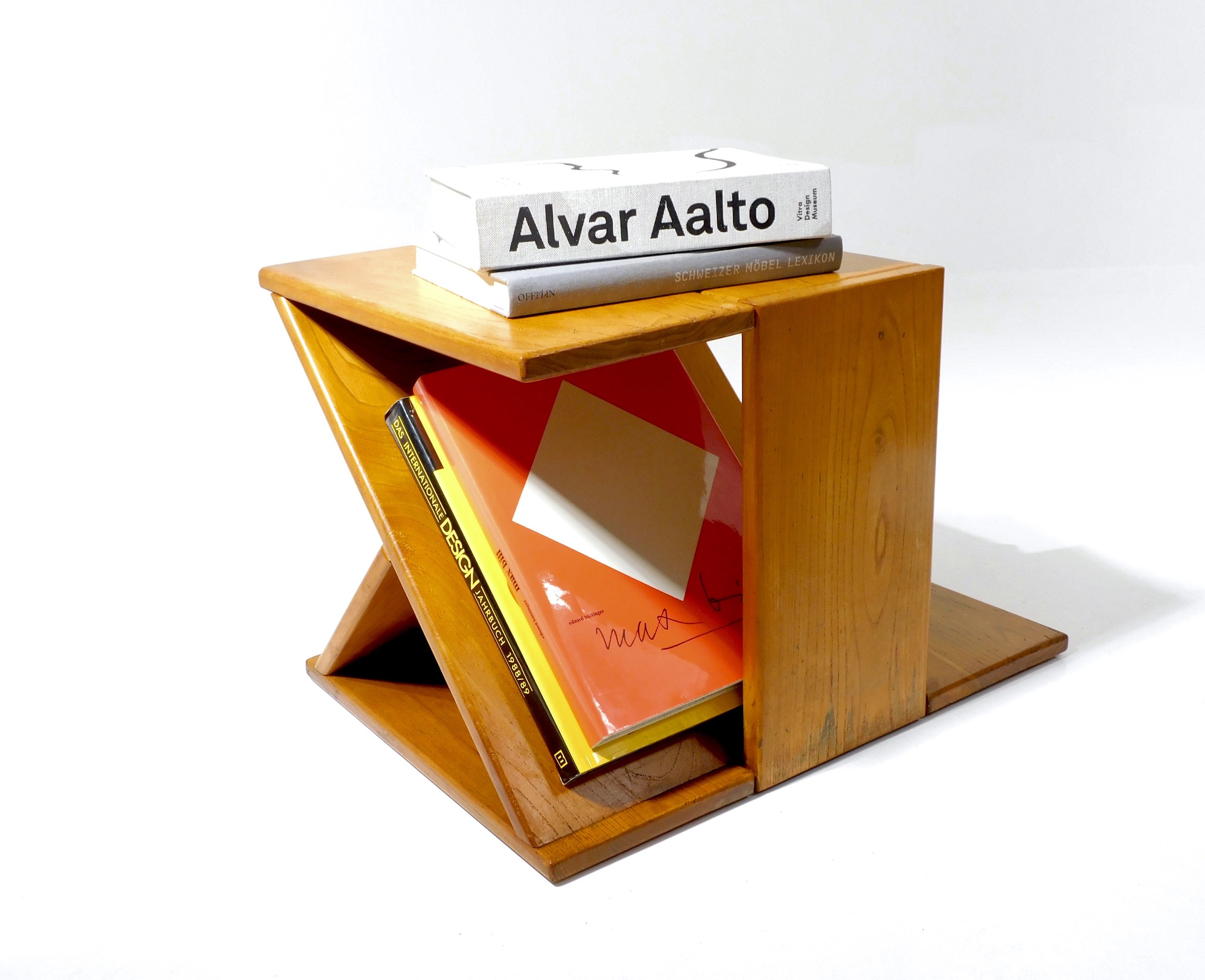 Der Französische Designer Alain Ladroit entwarf in den 1970/ 80er Jahren dieses fantastische, skulpturale Objekt, welches gleichzeitig Beistelltisch, Hocker und Zeitschriftensammler ist. Hergestellt wurde es durch das Französische Möbelunternehmen Maison Regain. Massives Ulmenholz, lackiert. Guter, stabiler Zustand mit charmanten Gebrauchspuren. Höhe 35cm.